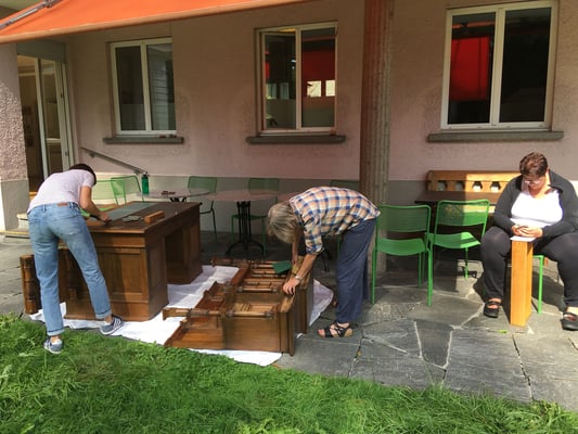 Nachdem wir dieses Möbel entsorgen, neu anstreichen und sogar verkaufen wollten, versuchten wir es an einem heissen Sommertag abzuschleifen, was uns teilweise wunderbar gelungen ist. Nach einem Ölanstrich sind wir nun stolz, es wieder im Haus zu haben. Die Idee des HOFLADEN knüpft an unser Zentrum für Selbstsorge an. Herzblut und Leidenschaft beim Sammeln, Abfüllen und Miteinander werken lassen wunderbare Produkte entstehen. Dinge tun, die man von Herzen gern tut, Sorge dazu tragen, dass man dieses dabei empfundene Glück so oft es geht spürt und auslebt - für sich selbst sorgen in Verbundenheit mit Anderen.