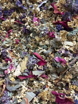 "Ruhe, Stille, Sofa und eine Tasse Tee geht über alles"Theodor Fontane Vor allem in der dunklen Jahreszeit oder bei Krankheiten und Stimmungstief greife ich auf unsere Blütenmischung aus Frühling und Sommer gern zurück und zaubere damit viel Seelenwärme. Im Laufe der Jahreszeiten sammel ich in Wald, Wiese und Garten Blüten und auch Kräuter, welche ich an einem trockenen, luftigen, eher dunklen Ort trockne. Den Blüten mische ich später manchmal noch einige aromatischen Blätter von...