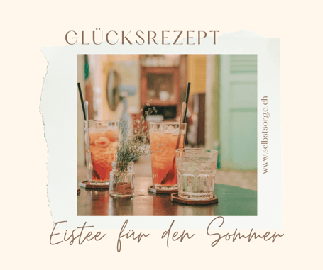 Mein Rezept für den Sommer tut auch gut und erfrischt. Ich erhielt es von meiner Kollegin Regula. Nachdem ich das Rezept ausprobiert und den erfrischenden Eistee-Sirup hergestellt hatte, fing ich an, das Rezept und den Sirup weiter zu verteilen. Ich blickte bisher in viele glückliche Gesichter. Das Glück hat sich bis jetzt stets auf mich selbst übertragen. Ein schönes Glück - Freude zu verteilen. Den guten Schwarztee für meinen Eistee erhielt ich übrigens genau auf diese Weise - geschenkt.
