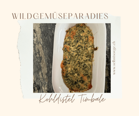 Die Kohldistelblätter in 1 cm breite Stücke schneiden und in Salzwasser 4 Minuten kochen, Abgiessen und auskühlen lassen.